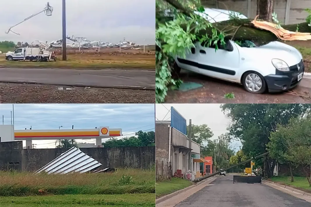 El temporal que afectó Entre Ríos durante la madrugada dejó árboles y postes caídos, voladuras de techos, daños en vehículos y calles anegadas en varias localidades. Las fotos.