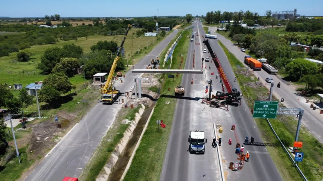 Continúan los trabajos de montaje del puente peatonal en el kilómetro 137 de la Ruta Nacional N°18, a la altura de Paso de la Laguna, departamento Villaguay.