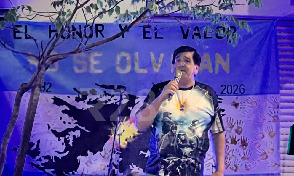 El monumento a los soldados y combatientes, ubicado en el lugar, se encontraba en impecables condiciones y lució su silueta de las islas, iluminación simbólica y banderas. Detrás de un cartel con la consigna “El honor y valor no se olvidan – 1982-2026”, los veteranos ofrecieron sus testimonios en un clima de recogimiento.