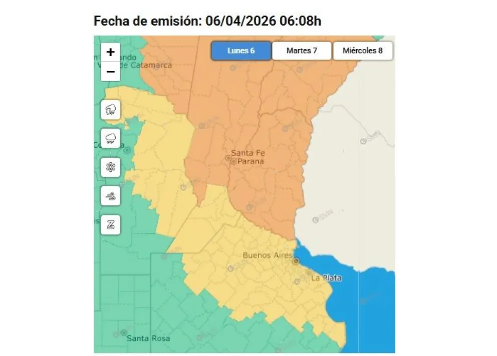 El alerta se mantendrá vigente durante gran parte de la jornada de este lunes, con probabilidad de que los fenómenos más intensos se registren desde la madrugada y se extiendan durante todo el día en distintas localidades. Las condiciones tenderían a mejorar durante el martes, aunque para gran parte de la provincia se mantiene la advertencia por tormentas, pero en nivel amarillo.