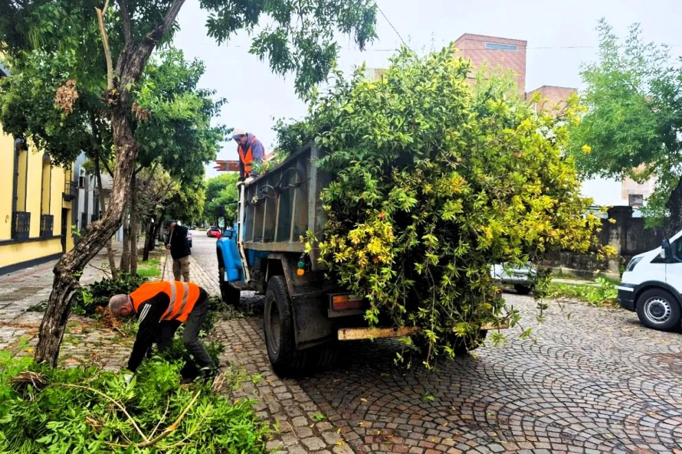 El trabajo se realiza de manera articulada entre las direcciones de Higiene Urbana, Espacios Verdes y Obras Públicas, bajo un esquema de trabajo por frentes que permite intervenir tanto sobre la calzada como en las áreas laterales.
