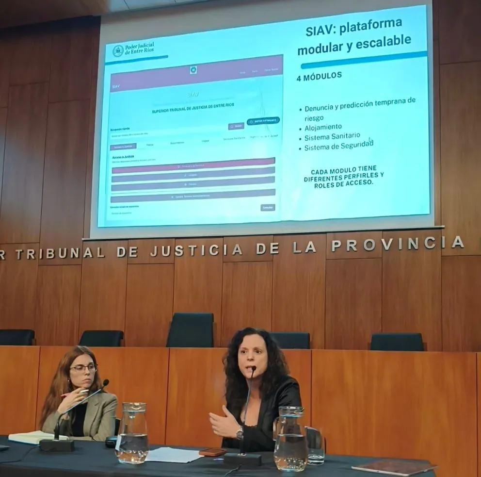 En el marco de una jornada sobre Inteligencia Artificial y Justicia, se presentó en detalle el trabajo del Sistema Interinstitucional de Abordaje de la Violencia (SIAV), diseñado por el Superior Tribunal de Justicia de Entre Ríos a través de su Programa de Gestión Judicial. El evento contó con la presencia del presidente del STJ, Germán Carlomagno, las vocales Susana Medina, Laura Mariana Soage y Gisela Schumacher, mientras que la vocal Claudia Mizawak participó de forma virtual.