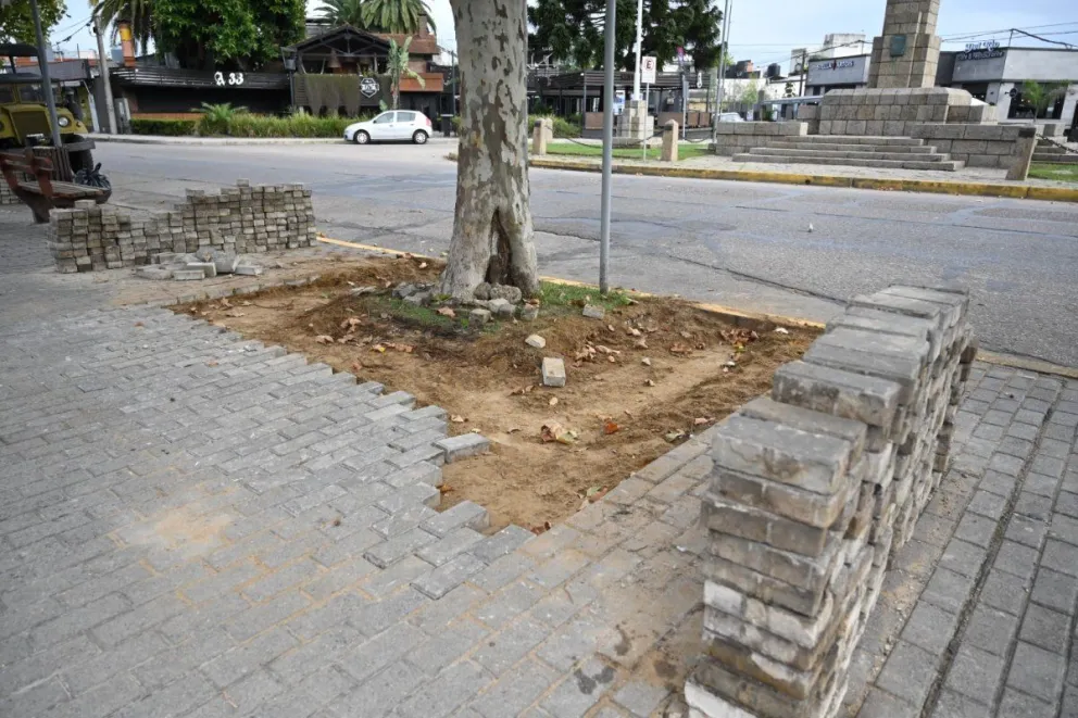 En paralelo, sobre la vereda de la Costanera se amplían los canteros para otorgar mayor volumen de suelo a las especies implantadas. Esta adecuación busca encauzar el desarrollo radicular y evitar que, a futuro, vuelvan a producirse levantamientos en la superficie.