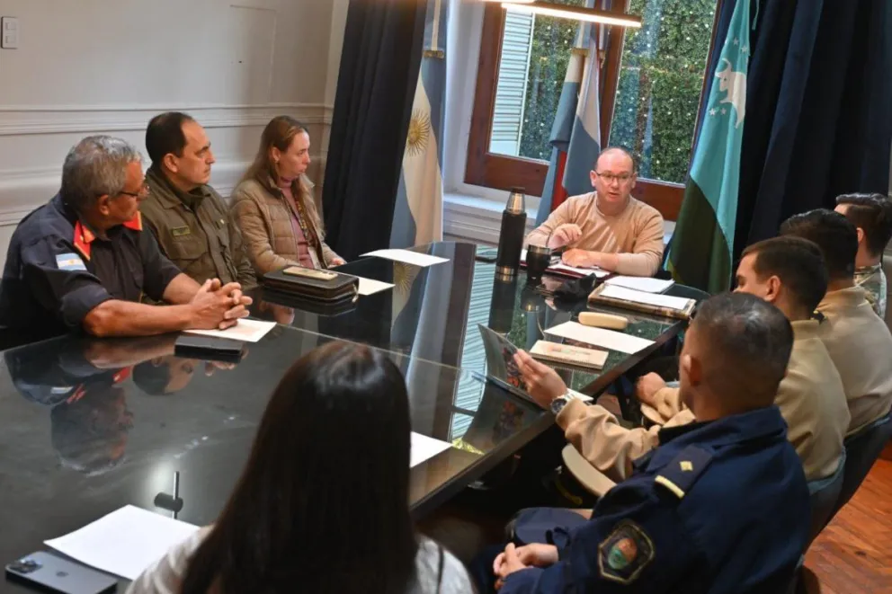 En el Salón Azul, el subsecretario de Protección Civil e Inspección General, Nicolás Bozzani, encabezó una reunión con representantes de fuerzas de seguridad para planificar respuestas ante posibles emergencias climáticas.